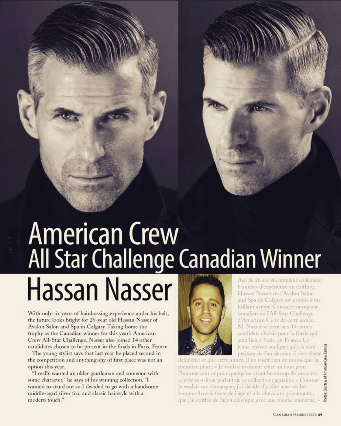 Our commitment to excellence has earned us multiple industry accolades, including Men’s Hairstylist of the Year in 2016, 2017, and 2018. Our work has been showcased internationally in Spain, France, Belgium, England, and Italy, and we’ve had the privilege of working with high-profile clients such as Miss Universe 2013, Miss Canada 2013, and members of the Calgary Flames.